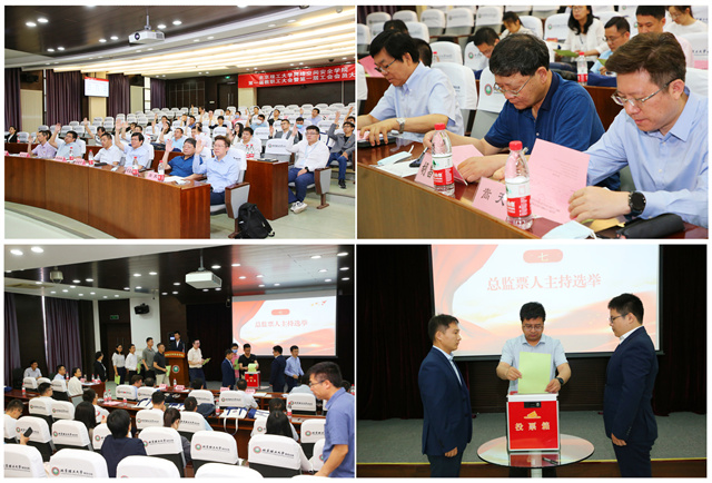 大会进行了学院第一届教职工大会执行委员会委员、第一届工会委员会委员的选举工作。刘莲汇报了大会筹备工作报告。选举环节由总监票人丁力主持,与会人员充分行使民主权利,以无记名等额投票选举产生了学院第一届教职工大会执行委员会委员6人(以姓氏笔划为序):刘莲、张中山、罗森林、郑军、彭图、谭毓安,以及学院第一届工会委员会委员9人(以姓氏笔划为序):乔珂欣、危胜军、刘莲、刘琨、沈蒙、苗夏箐、郝浩倩、彭图、潘高峰。