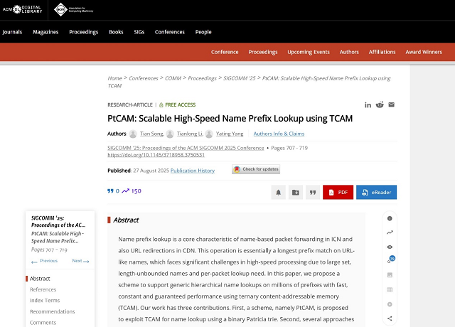 近日,北京理工大学betway西汉姆联嵩天教授团队在新一代互联网架构研究与高性能网络处理技术方面取得重要突破。团队成果“PtCAM: ...